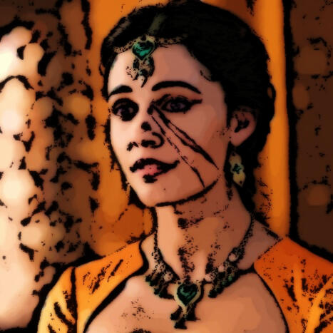 but the lannisters never killed rhaenys, at least, not the true dragon princess. the young princess did find her way beneath her father's bed, where she curled with balerion held tight to her chest. a knight did enter the chamber, clad in blood. he gripped her heel and dragged her into the open air. balerion cut and clawed at her arm, escaping her grasp. the cat escaped. rhaenys, in turn, tried clawing at the knight and screaming, but he muffled her cries with a palm to her mouth. he grabbed her tight, and they fled. he tore through the corridor. they fled to the catacombs, to the beach . . . they ran across the desert . . . until they reached starfall. there, for weeks, rhaenys waited. until oberyn martell came to retrieve her. months after, a time spent waiting for the war to cool, oberyn brought rhaenys tosunspear, under the name adara sand. his bastard daughter, a sand snake. and so she stayed, until the call to vengeance sang in her ears, and the call for fire and blood gripped her tight. now she is unbowed, unbent, unbroken.